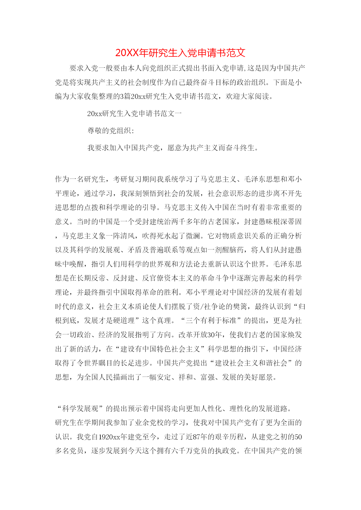 20XX年研究生入党申请书模板.doc