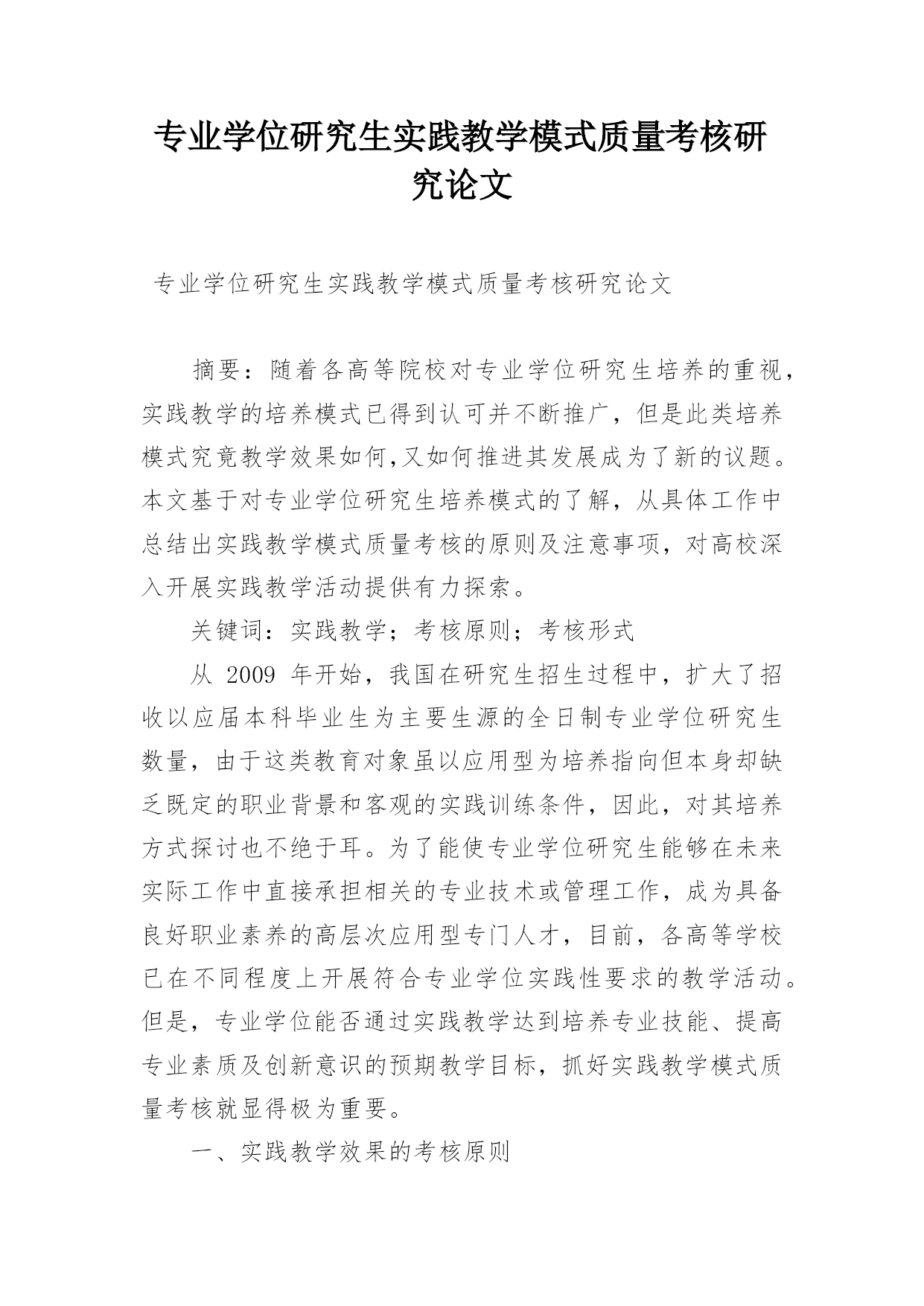 专业学位研究生实践教学模式质量考核研究论文.docx