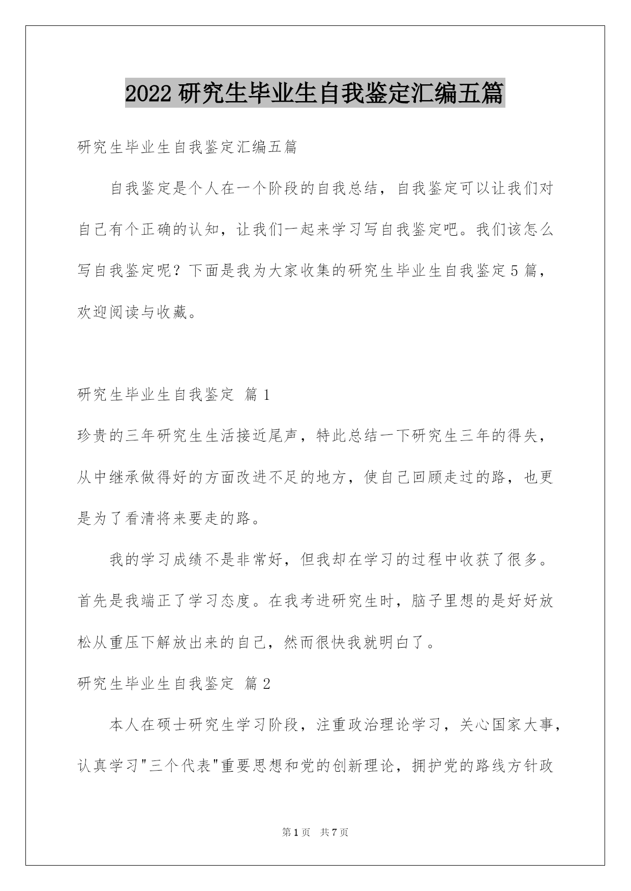 2022研究生毕业生自我鉴定汇编五篇.docx