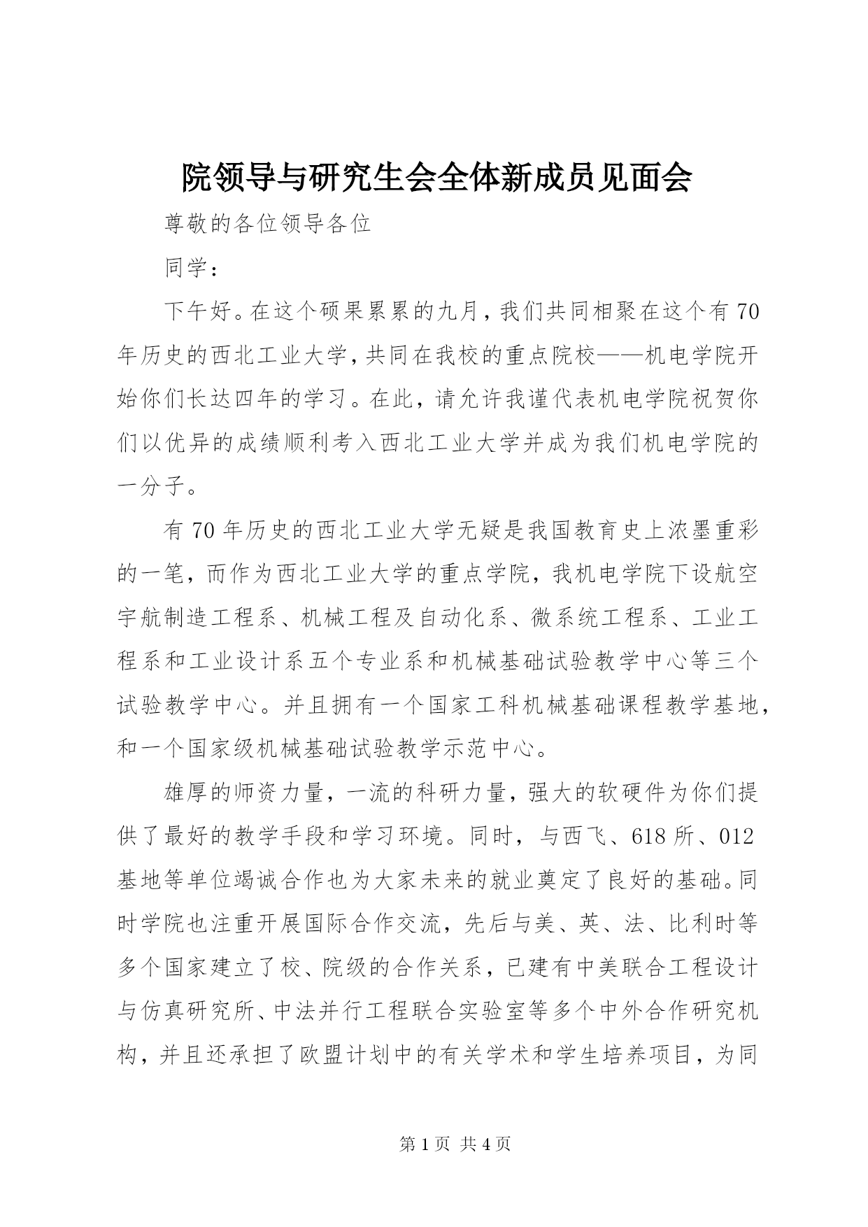 第PAGE\*Arabic\*MERGEFORMAT4页共NUMPAGES\*MERGEFORMAT4页院领导与研究生会全体新成员见面会尊敬的各位领导各位同学:下午好。在这个硕果累累的九月,我们共同相聚在这个有70年历史的西北工业大学,共同在我校的重点院校——机电学院开始你们长达四年的学习。在此,请允许我谨代表机电学院祝贺你们以优异的成绩顺利考入西北工业大学并成为我们机电学院的一分子。有70年历史的西北工业大学无疑是我国教育史上浓墨重彩的一笔,而作为西北工业大学的重点学院,我机电学院下设航空宇