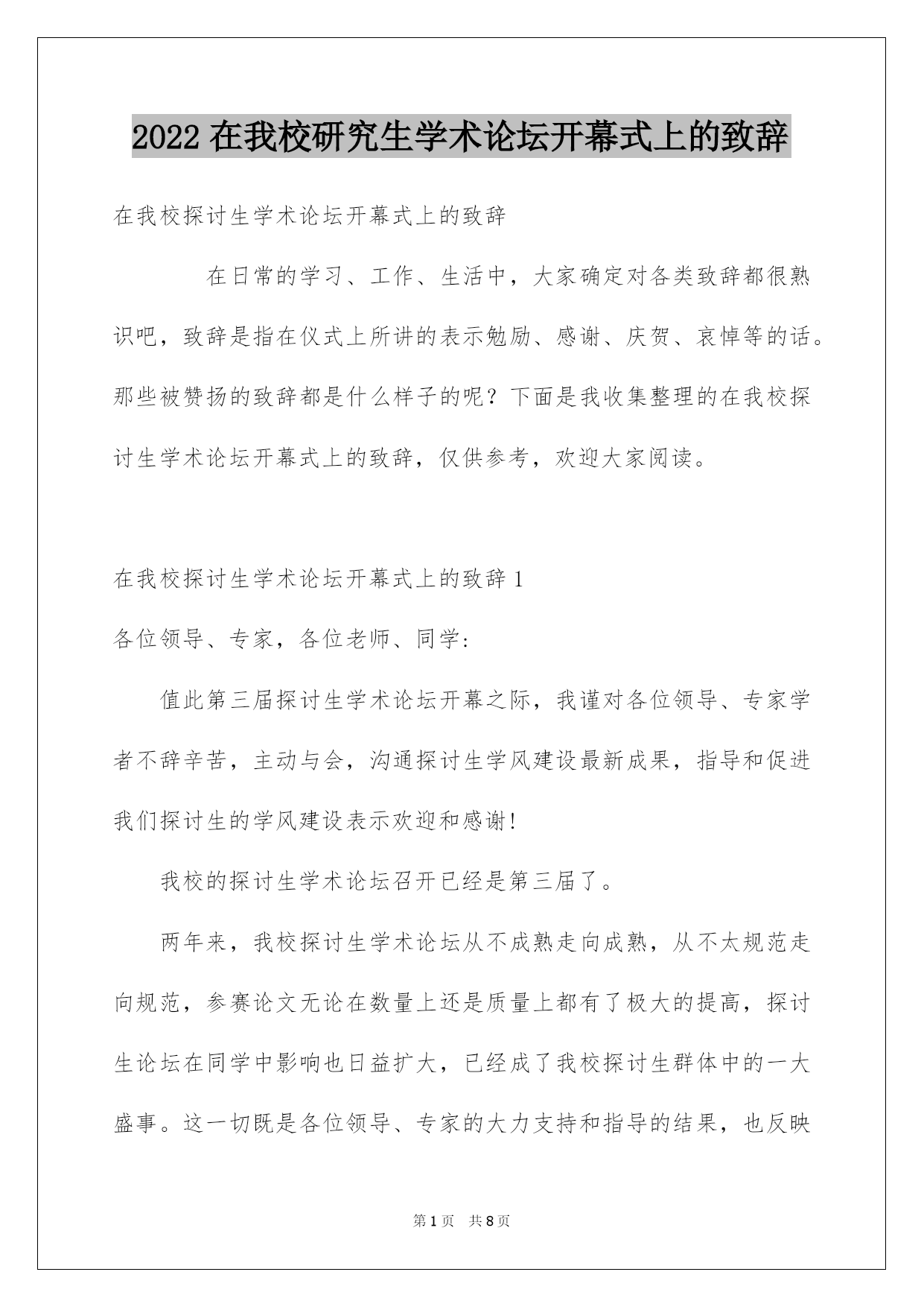 2022在我校研究生学术论坛开幕式上的致辞.docx