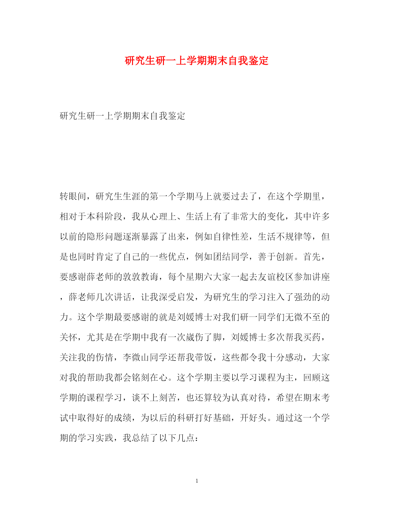 2022研究生研一上学期期末自我鉴定.docx