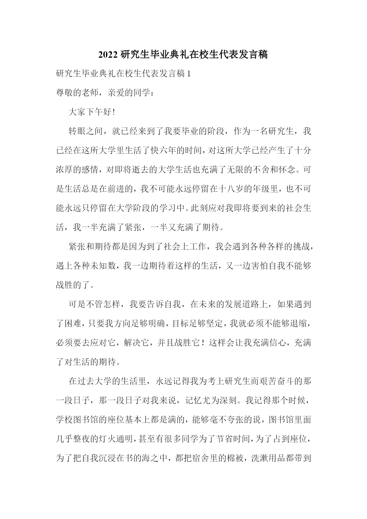 2022研究生毕业典礼在校生代表发言稿.doc