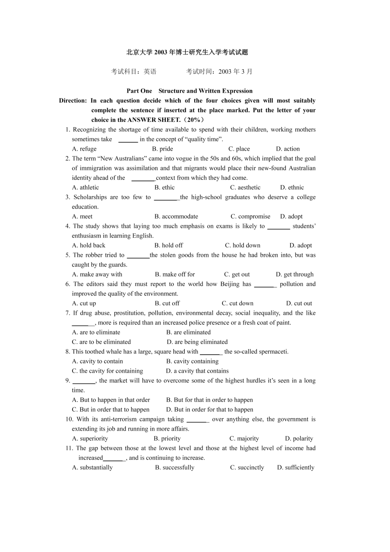 北京大学2003博士研究生入学考试试题.doc