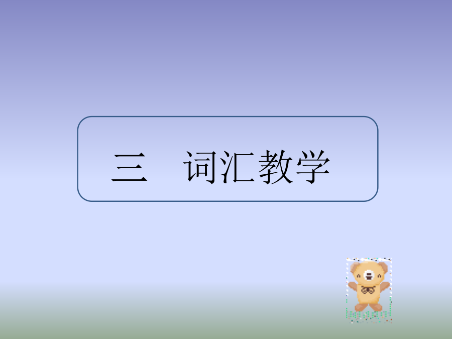 词汇是语言表达的前提,词汇知识是语言使用者语言能力的一个重要组成部分。同样,词汇教学也是语言教学的一个重要的基础,大部分的课堂教学都是建立在词汇教学基础之上的。词汇教学主要涉及词汇量的控制,词的选择,词义解释,词汇练习方式等问题(吕必松,1996)。词汇教学的一般性策略和方法主要有以下几个内容;4.随着教学的逐步深入,应越来越强调词汇的输出训练。要注重使用语义场概念,在特定的词汇网路中进行词汇学习和练习。5.猜测和利用上下文线索进行词汇理解训练非常有效,尤其是在阅读教学和训练时,阅读材料以及相关的练习对词