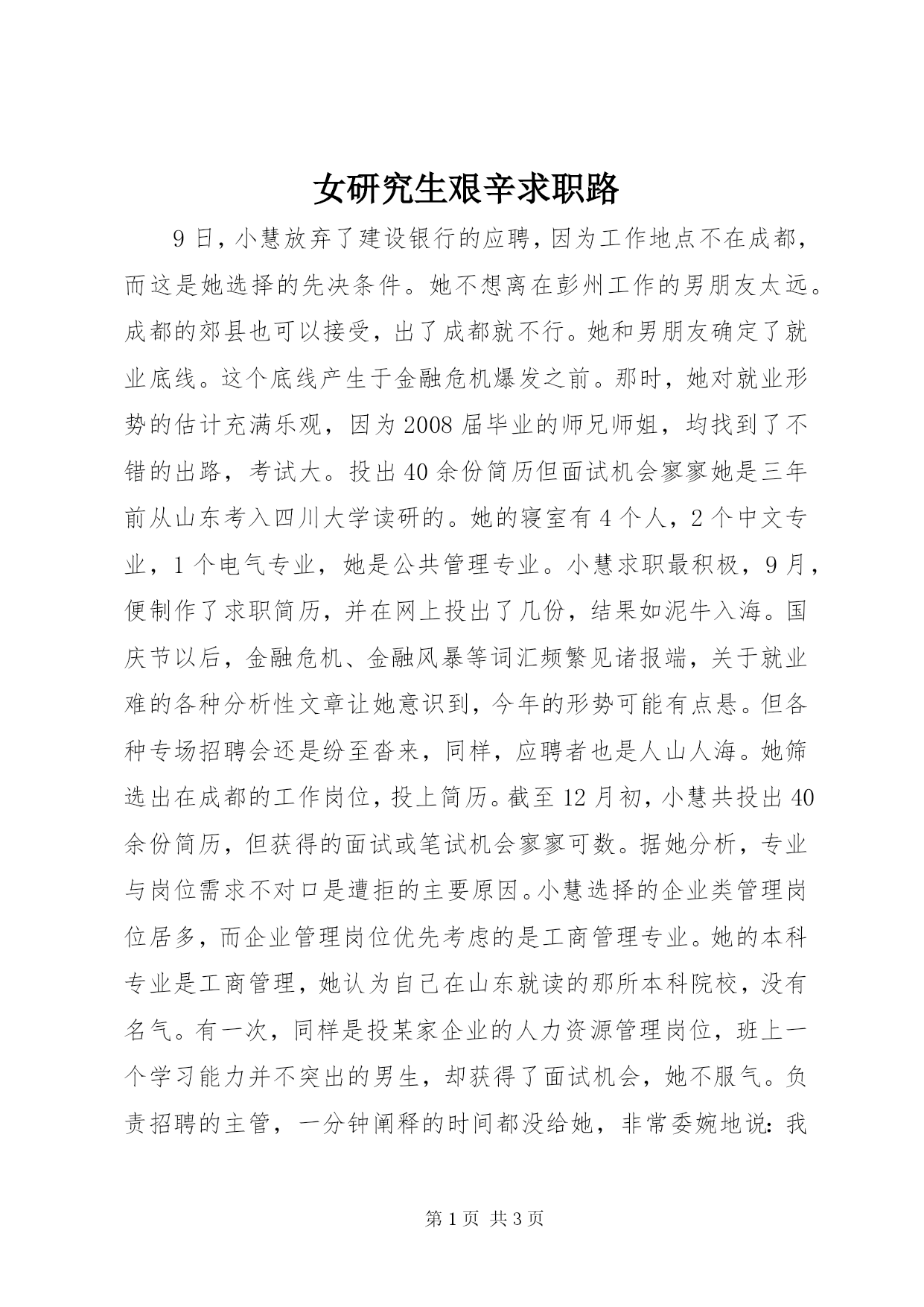第PAGE\*Arabic\*MERGEFORMAT3页共NUMPAGES\*MERGEFORMAT3页女研究生艰辛求职路9日,小慧放弃了建设银行的应聘,因为工作地点不在成都,而这是她选择的先决条件。她不想离在彭州工作的男朋友太远。成都的郊县也可以接受,出了成都就不行。她和男朋友确定了就业底线。这个底线产生于金融危机爆发之前。那时,她对就业形势的估计充满乐观,因为2008届毕业的师兄师姐,均找到了不错的出路,考试大。投出40余份简历但面试机会寥寥她是三年前从山东考入四川大学读研的。她的寝室有4