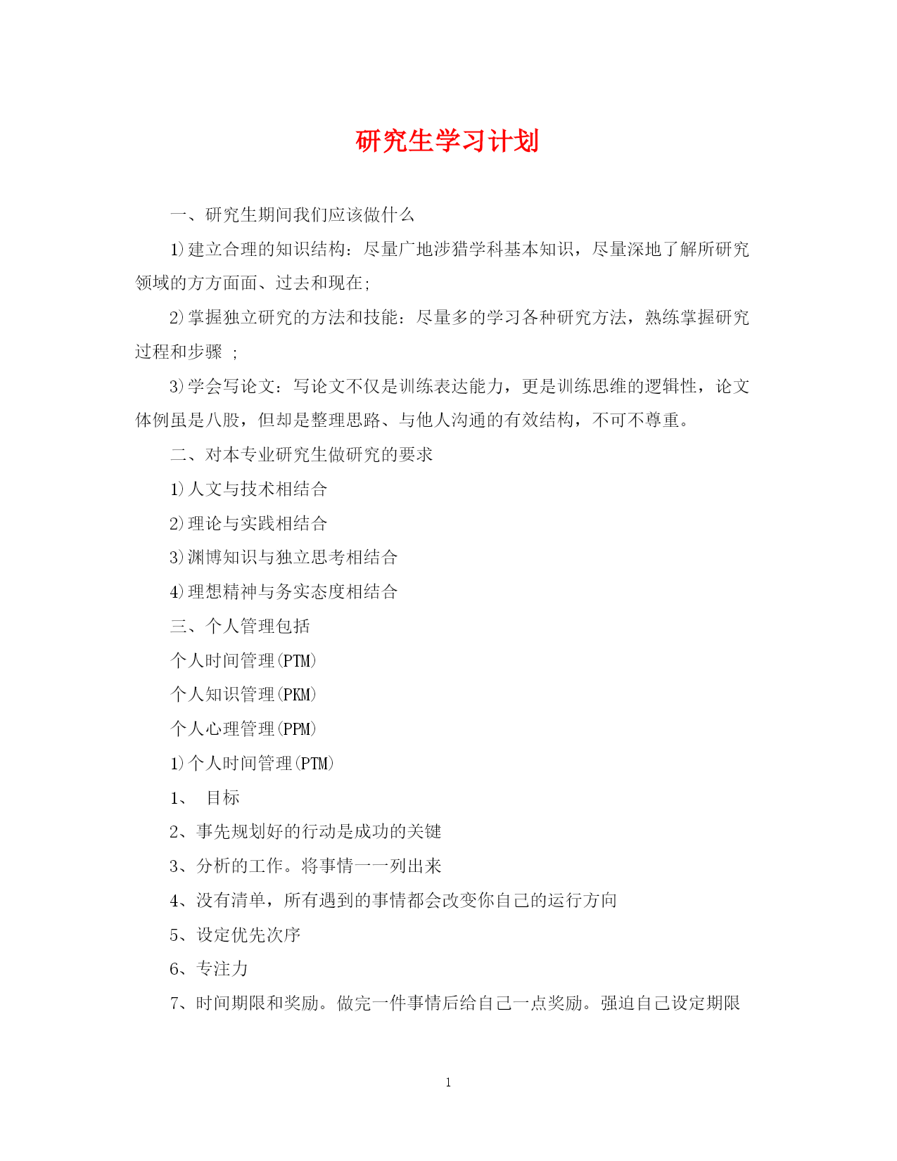此资料由网络收集而来,如有侵权请告知上传者立即删除。资料共分享,我们负责传递知识。PAGEPAGE9研究生学习计划一、研究生期间我们应该做什么1)建立合理的知识结构:尽量广地涉猎学科基本知识,尽量深地了解所研究领域的方方面面、过去和现在;2)掌握独立研究的方法和技能:尽量多的学习各种研究方法,熟练掌握研究过程和步骤;3)学会写论文:写论文不仅是训练表达能力,更是训练思维的逻辑性,论文体例虽是八股,但却是整理思路、与他人沟通的有效结构,不可不尊重。二、对本专业研究生做研究的要求1)人文与技术相结