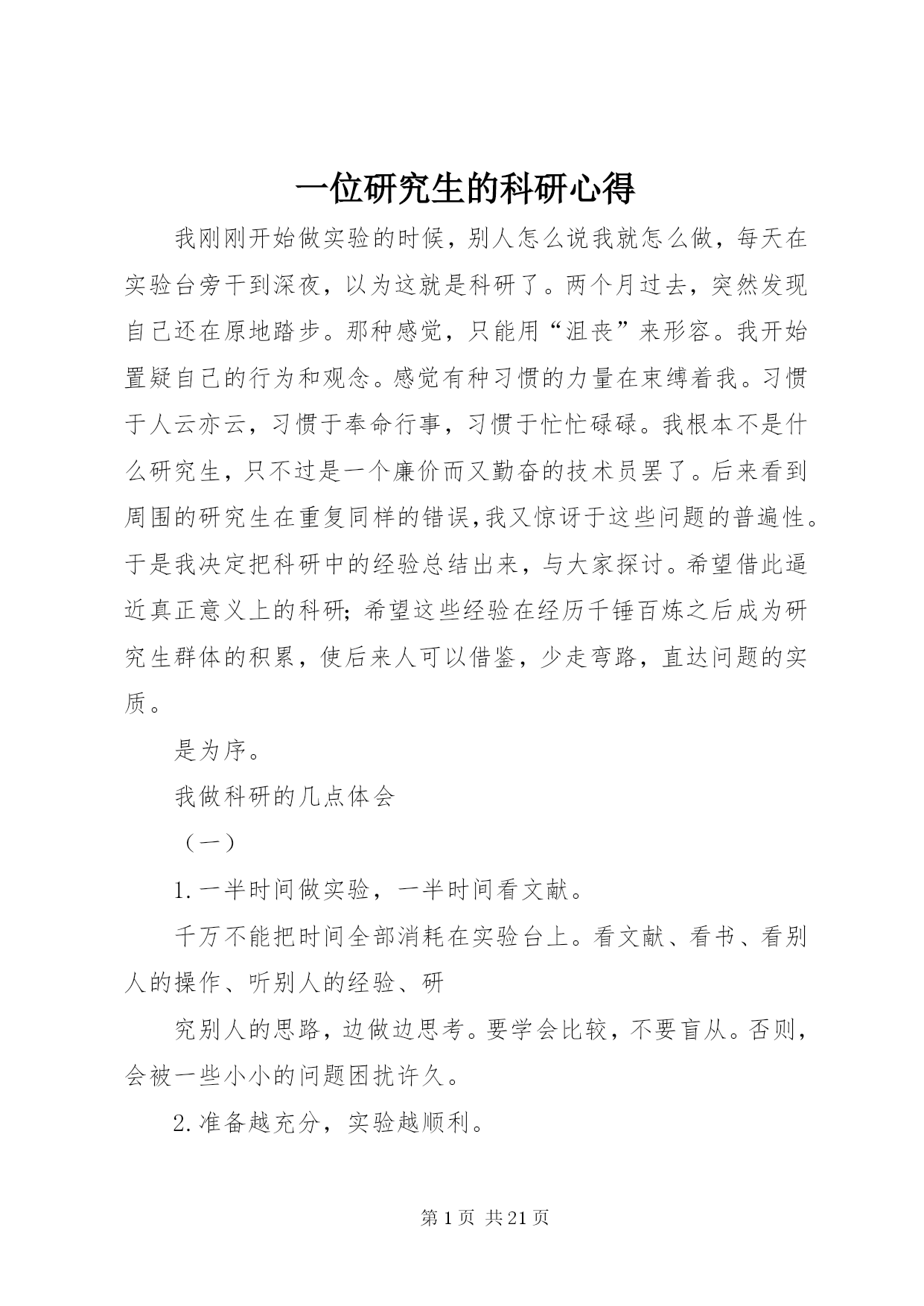 第PAGE\*Arabic\*MERGEFORMAT21页共NUMPAGES\*MERGEFORMAT21页一位研究生的科研心得我刚刚开始做实验的时候,别人怎么说我就怎么做,每天在实验台旁干到深夜,以为这就是科研了。两个月过去,突然发现自己还在原地踏步。那种感觉,只能用“沮丧”来形容。我开始置疑自己的行为和观念。感觉有种习惯的力量在束缚着我。习惯于人云亦云,习惯于奉命行事,习惯于忙忙碌碌。我根本不是什么研究生,只不过是一个廉价而又勤奋的技术员罢了。后来看到周围的研究生在重复同样的错误,我又惊讶