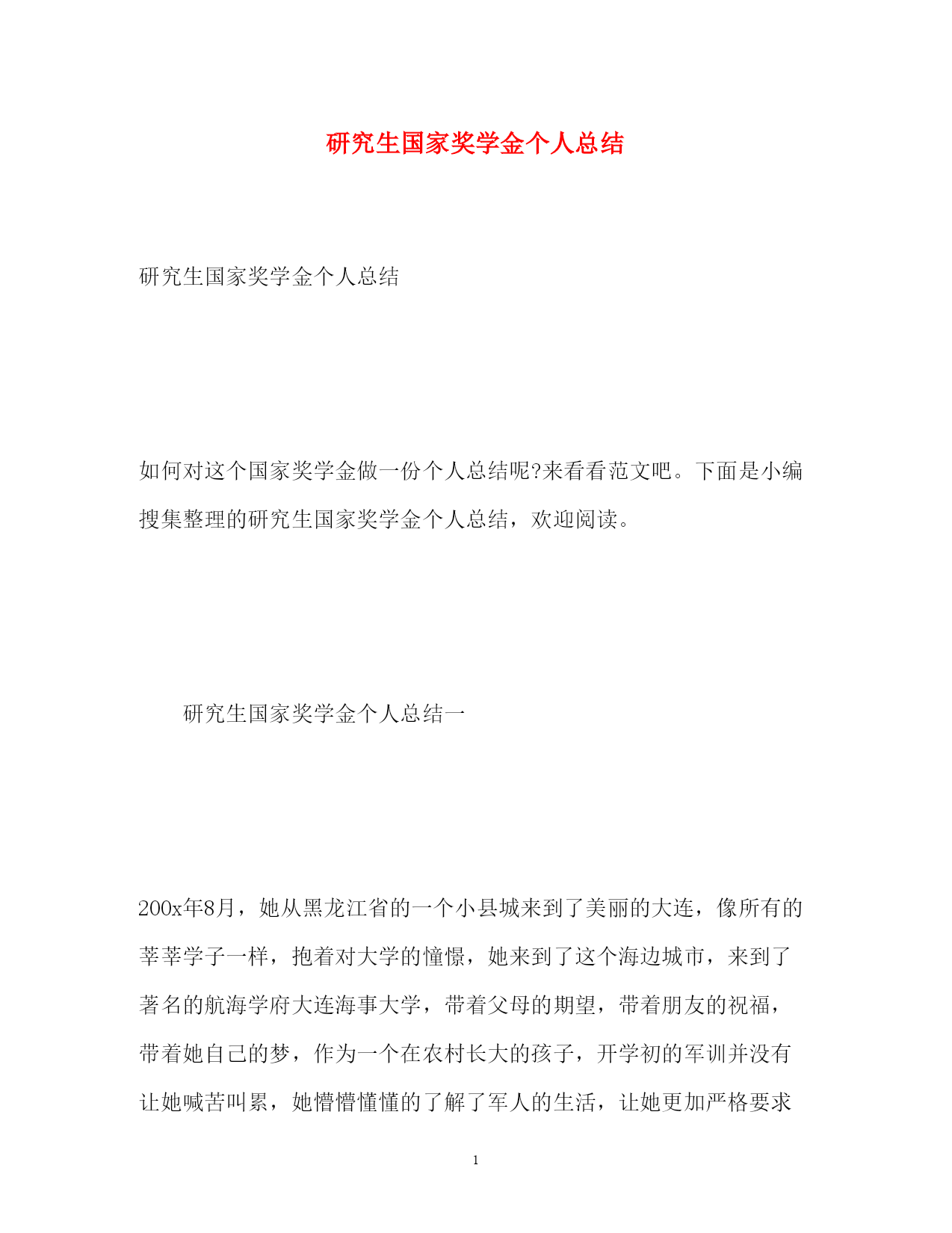 此资料由网络收集而来,如有侵权请告知上传者立即删除。资料共分享,我们负责传递知识。PAGEPAGE11研究生国家奖学金个人总结研究生国家奖学金个人总结如何对这个国家奖学金做一份个人总结呢?来看看范文吧。下面是小编搜集整理的研究生国家奖学金个人总结,欢迎阅读。研究生国家奖学金个人总结一200x年8月,她从黑龙江省的一个小县城来到了美丽的大连,像所有的莘莘学子一样,抱着对大学的憧憬,她来到了这个海边城市,来到了著名的航海学府大连海事大学,带着父母的期望,带着朋友的祝福,带着她自己的梦,作为一个在农