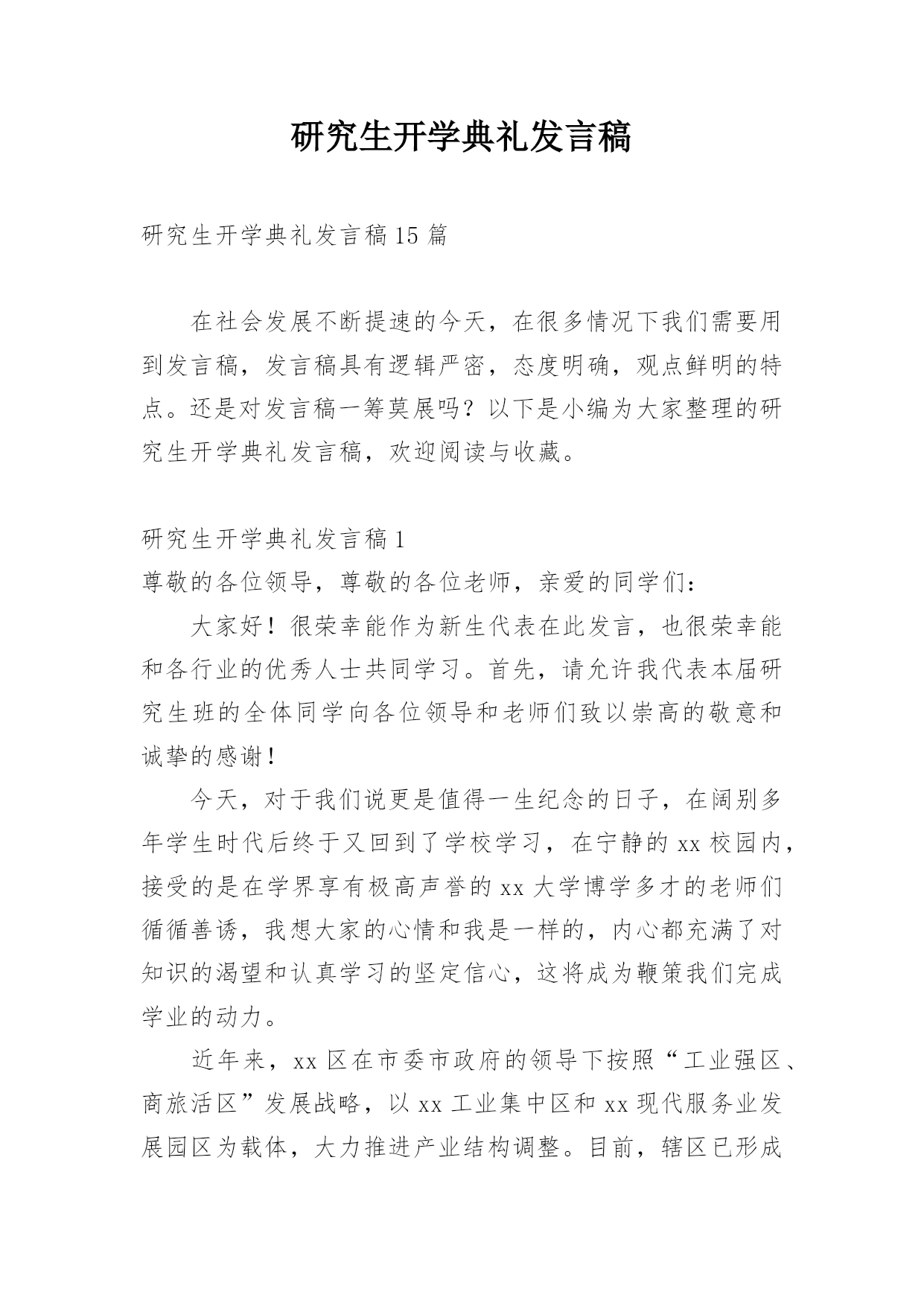 研究生开学典礼发言稿研究生开学典礼发言稿15篇在社会发展不断提速的今天,在很多情况下我们需要用到发言稿,发言稿具有逻辑严密,态度明确,观点鲜明的特点。还是对发言稿一筹莫展吗?以下是小编为大家整理的研究生开学典礼发言稿,欢迎阅读与收藏。研究生开学典礼发言稿1尊敬的各位领导,尊敬的各位老师,亲爱的同学们:大家好!很荣幸能作为新生代表在此发言,也很荣幸能和各行业的优秀人士共同学习。首先,请允许我代表本届研究生班的全体同学向各位领导和老师们致以崇高的敬意和诚挚的感谢!今天,对于我们说更是值得一生纪念的日子,在阔别