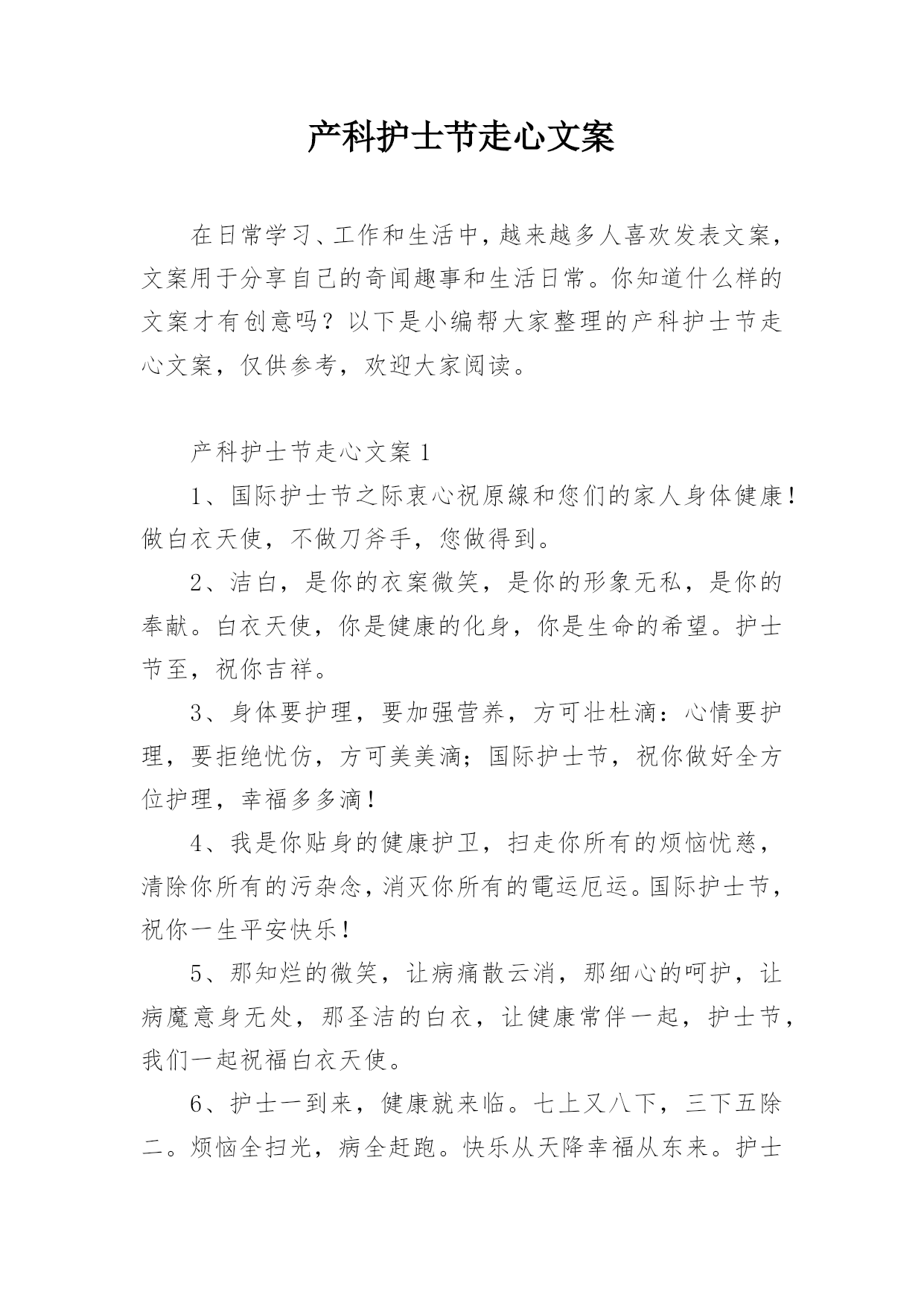 产科护士节走心文案在日常学习、工作和生活中,越来越多人喜欢发表文案,文案用于分享自己的奇闻趣事和生活日常。你知道什么样的文案才有创意吗?以下是小编帮大家整理的产科护士节走心文案,仅供参考,欢迎大家阅读。产科护士节走心文案11、国际护士节之际衷心祝原線和您们的家人身体健康!做白衣天使,不做刀斧手,您做得到。2、洁白,是你的衣案微笑,是你的形象无私,是你的奉献。白衣天使,你是健康的化身,你是生命的希望。护士节至,祝你吉祥。3、身体要护理,要加强营养,方可壮杜滴:心情要护理,要拒绝忧仿,方可美美滴;国际护士节,