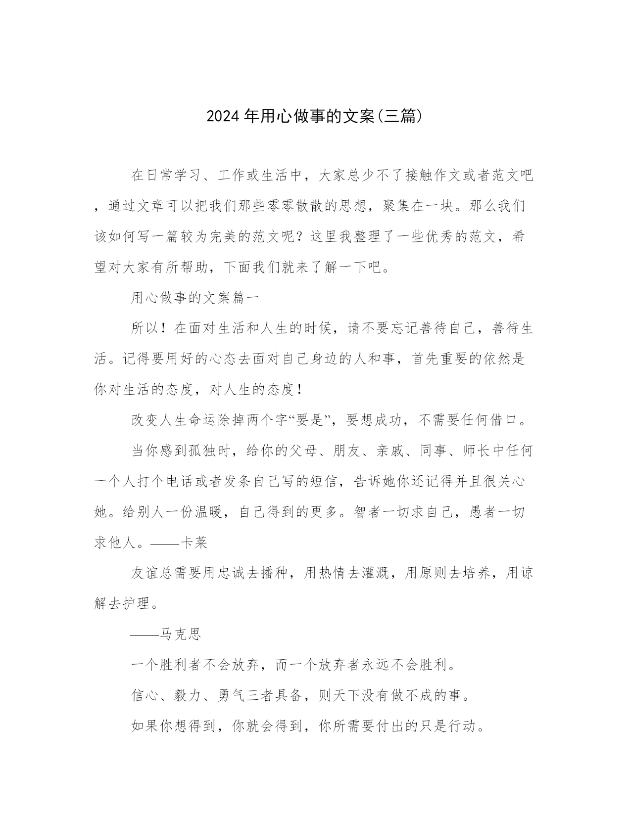 2024年用心做事的文案(三篇).docx