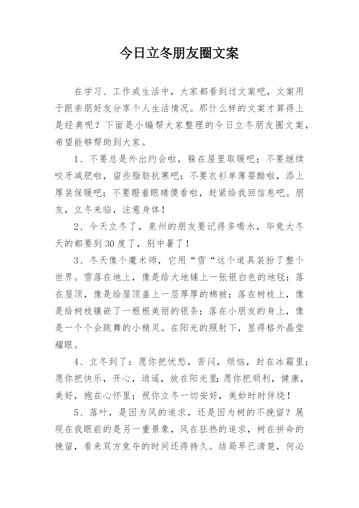今日立冬朋友圈文案.docx