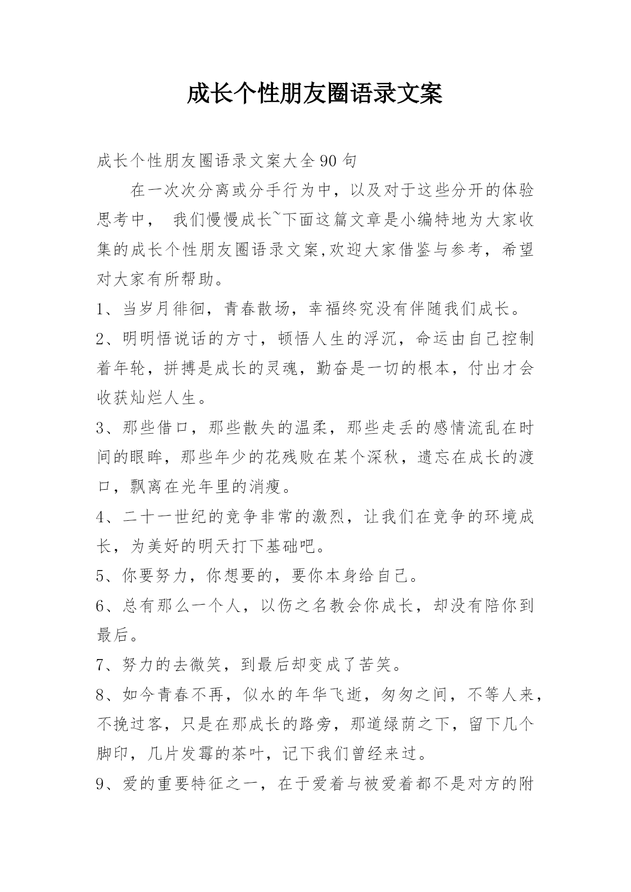成长个性朋友圈语录文案成长个性朋友圈语录文案大全90句在一次次分离或分手行为中,以及对于这些分开的体验思考中,我们慢慢成长~下面这篇文章是小编特地为大家收集的成长个性朋友圈语录文案,欢迎大家借鉴与参考,希望对大家有所帮助。1、当岁月徘徊,青春散场,幸福终究没有伴随我们成长。2、明明悟说话的方寸,顿悟人生的浮沉,命运由自己控制着年轮,拼搏是成长的灵魂,勤奋是一切的根本,付出才会收获灿烂人生。3、那些借口,那些散失的温柔,那些走丢的感情流乱在时间的眼眸,那些年少的花残败在某个深秋,遗忘在成长的渡口,飘离在光年