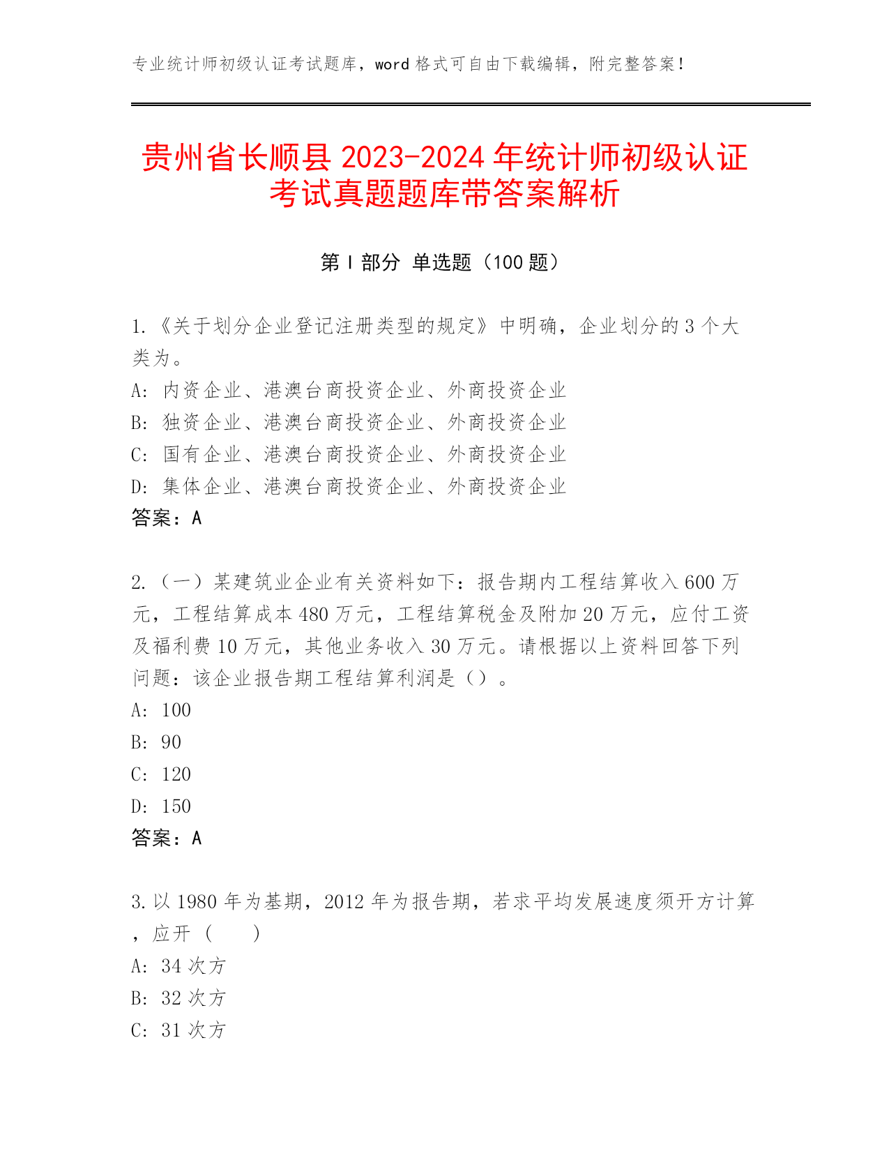 贵州省长顺县2023-2024年统计师初级认证考试真题题库带答案解析.docx
