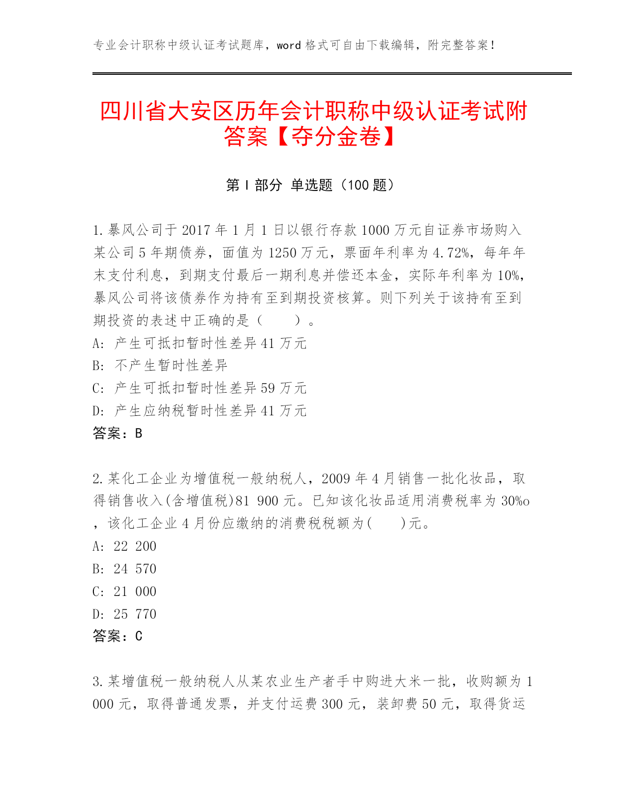 四川省大安区历年会计职称中级认证考试附答案【夺分金卷】.docx