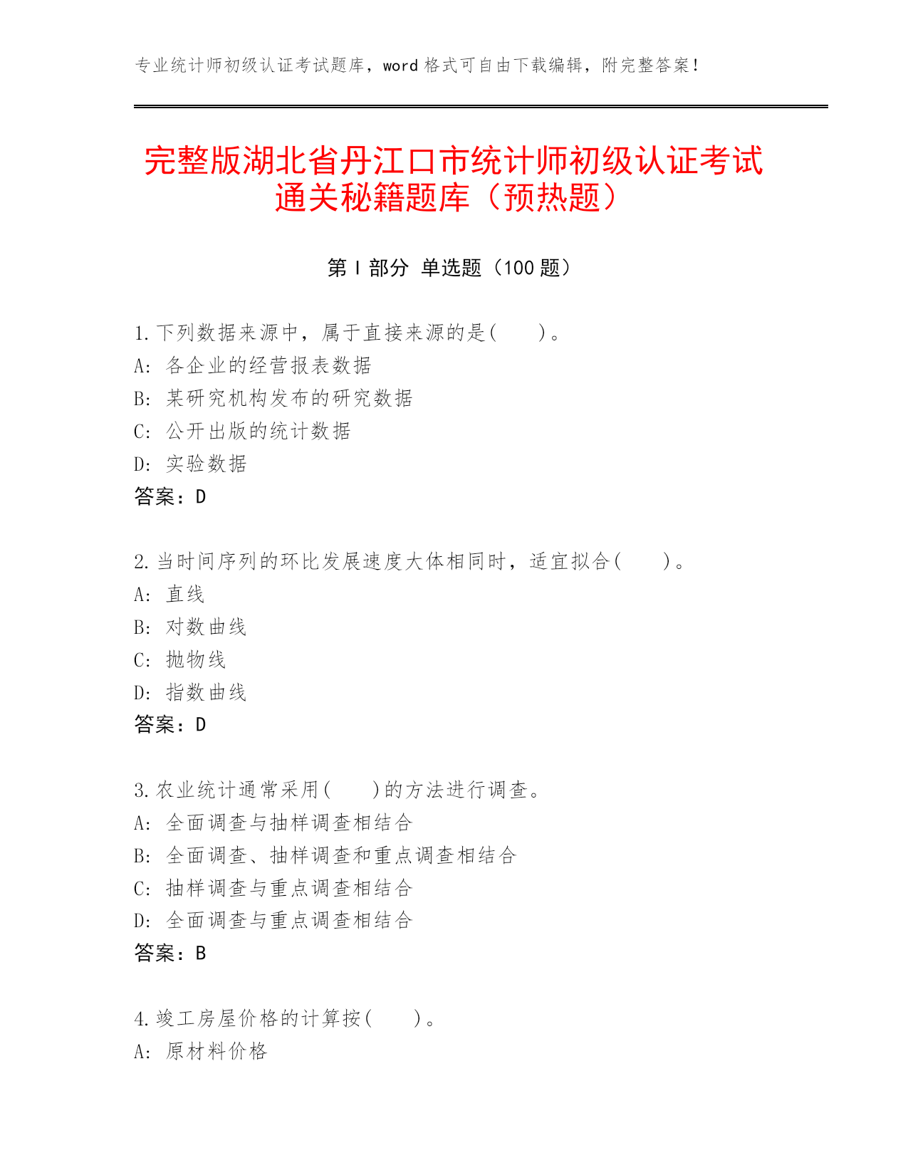完整版湖北省丹江口市统计师初级认证考试通关秘籍题库(预热题).docx