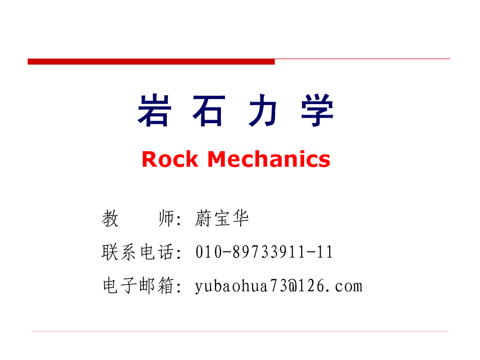 岩石力学RockMechanics教师:蔚宝华联系电话:010-89733911-11电子邮箱:yubaohua73@126.com第一节第一节概概述述一、天然应力的概念1.天然应力:人类工程活动之前,天然状态下,岩体内部存在的应力,称为岩体天然应力或岩体初始应力,有时也称为地应力。2.重布应力:人类进行工程建设将引起一定范围内岩体初始应力的改变,工程建设扰动后的岩体应力称为重布应力或二次应力。第一节第一节概概述述++++++++++++++++++∧天然应力σθσθ→←↓↑σθ重分布应力概概述述一般情况