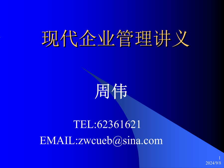 现代企业管理讲义第一章企业概述企业是国民经济的细胞,是人们从事生产、交换、分配等经济活动的基本单位。那么什么是企业?它具有哪些特征?企业生存和发展的目标是什么?企业有哪些形式?什么是现代企业制度?为什么要建立现代企业制度?这些问题都是本章要回答的。一、企业的概念和特征。所谓企业是指从事生产、流通或服务性活动的独立核算经济单位。如工业企业、农业企业、商业企业等(辞海)。企业管理学研究多以工业企业为主要对象。作为一个工业企业(如杭州橡胶厂),必须具有以下一些基本要素:1拥有一定数量的生产设备和资金——财和物;