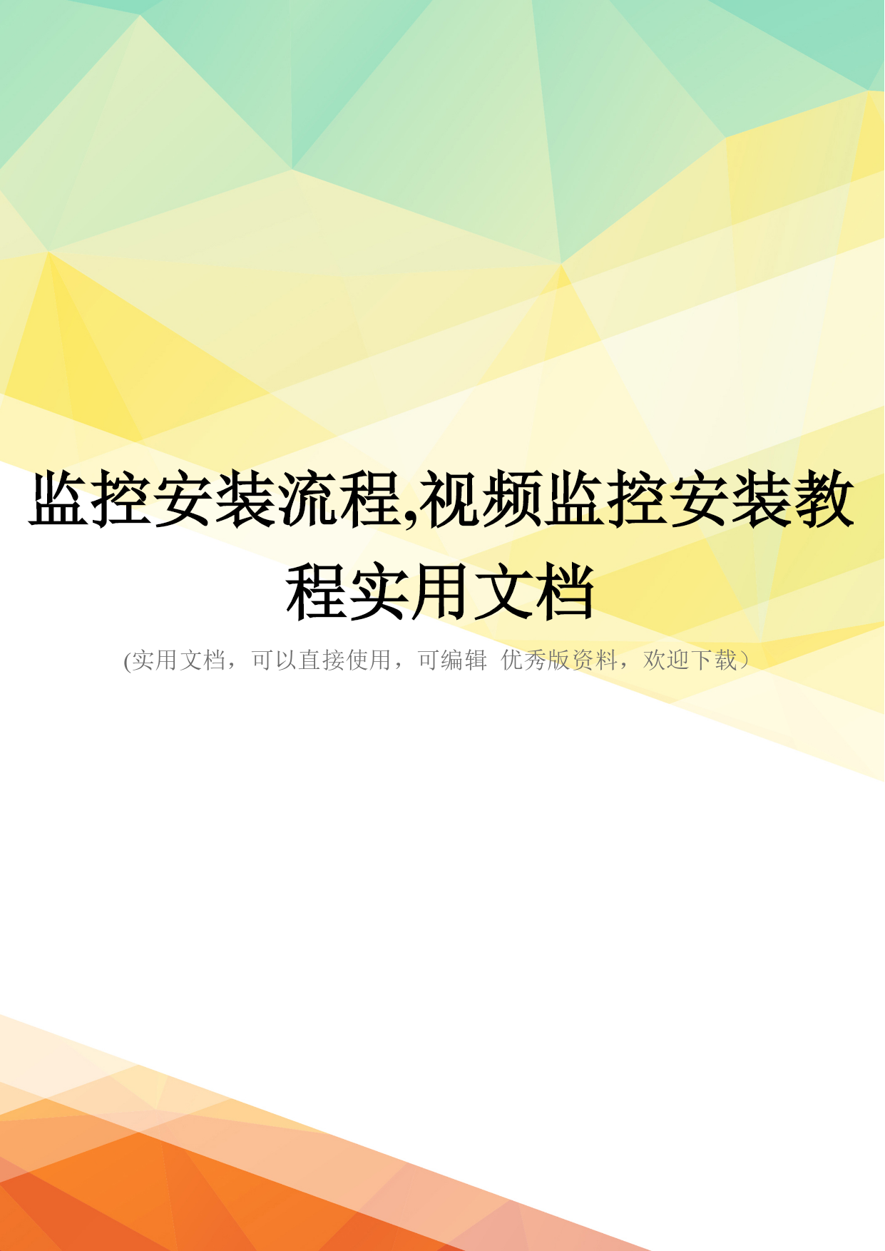 监控安装流程,视频监控安装教程实用文档(实用文档,可以直接使用,可编辑优秀版资料,欢迎下载)监控安装指导与注意事项A、线路安装与选材1、电源线:要选“阻燃”电缆,皮结实,在省成本前提下,尽量用粗点地,以减少电源地衰减。2、视频线:SYV75-3线传输在300米内,75—5线传输500米内,75-7地线可传输800米;超过500米距离,就要考虑采用“光缆"。另外,要注意“同轴电缆"地质量.3、控制线:一般选用“带屏蔽”2*1.0地线缆,RVVP2*1。0。4、穿线管:一般用“PVC管”即可,要“埋地、防爆"