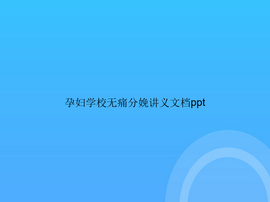 孕妇学校无痛分娩讲义文档ppt平安医院孕妇课堂欢迎您!平安医院自然分娩对新生儿的好处了解自然分娩的好处分娩疼痛是客观事实,疼痛研究是医学领域中古老而现代的课题。随着剖宫产技术与安全性的提高,许多困难的分娩及困难的阴道助产术常常被剖宫产术所代替。实事求是的认识剖宫产术的弊端在我国目前,因为产痛主动要求剖宫产手术结束分娩的“社会因素”占了很大一部分,加上我国能且愿意为孕产妇实施分娩镇痛的医院少之又少,不足1%的分娩镇痛普及率就足以说明一切问题,孕产妇害怕产痛,医院又无能为力为孕产妇提供高质量的分娩镇痛医疗服务