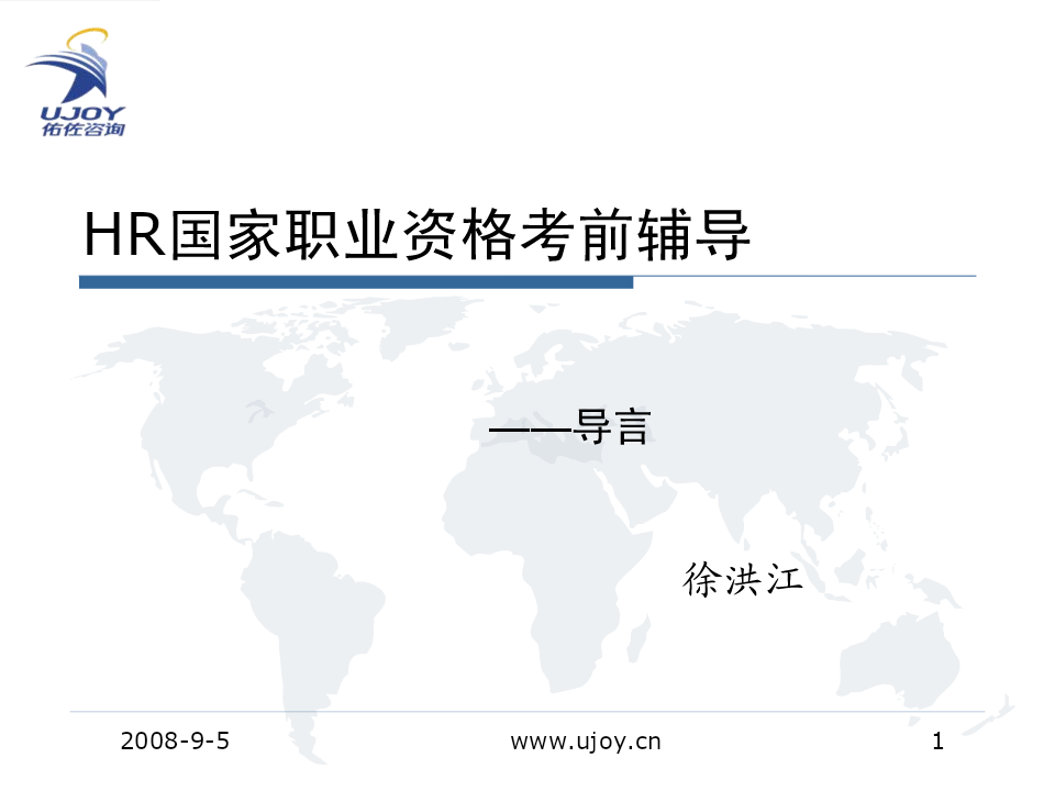 HR国家职业资格考前辅导——导言徐洪江2008-9-5www.ujoy.cn1预期合理复习充分2007年三理论知识通过率——85.83%级技能通过率——86.7%二理论知识通过率——90.19%级技能通过率——77.33%论文——96.74%2整体复习计划11月23日培训阶段强化阶段冲刺阶段重点:重点:重点:了解体系,熟加强记忆,形勤加练习,适知内容。成大纲。应考试。要求:要求:要求:熟悉书本框架形成自已的考从网站上下载,排除书上难试复习大纲,模拟试卷进行点。做完《习题集》考前强化训上的习题。练,注意控制