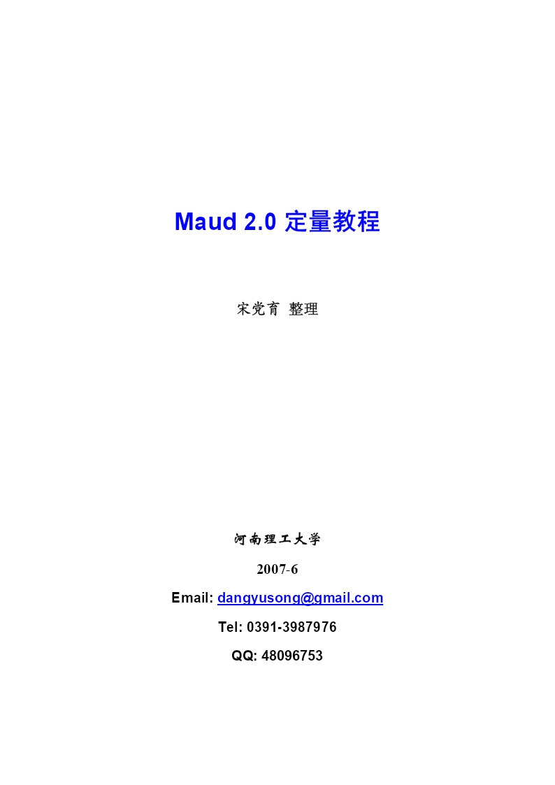 Maud2.0定量教程宋党育整理河南理工大学2007-6Email:dangyusong@gmail.comTel:0391-3987976QQ:48096753IntroductionHerearetheinstructionstoperformaRietveldquantitativeanalysisonaZrO2/Al2O3powdersampleusingMaud.Version2.03(releasedSeptember12,2005)orhigherisneededforthistutoria