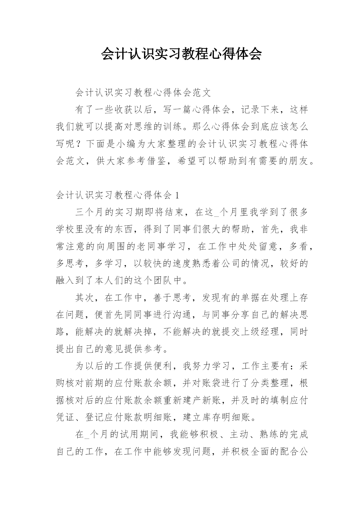 会计认识实习教程心得体会会计认识实习教程心得体会范文有了一些收获以后,写一篇心得体会,记录下来,这样我们就可以提高对思维的训练。那么心得体会到底应该怎么写呢?下面是小编为大家整理的会计认识实习教程心得体会范文,供大家参考借鉴,希望可以帮助到有需要的朋友。会计认识实习教程心得体会1三个月的实习期即将结束,在这_个月里我学到了很多学校里没有的东西,得到了同事们很大的帮助,首先,我非常注意的向周围的老同事学习,在工作中处处留意,多看,多思考,多学习,以较快的速度熟悉着公司的情况,较好的融入到了本人们的这个团队中