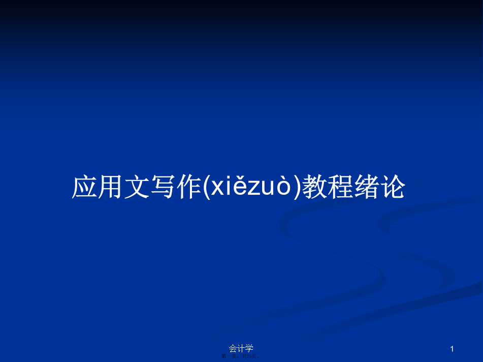 会计学第一章绪论第一章绪论第一节应用文概述(ɡàishù)第一节应用文概述(ɡàishù)一、应用文的产生(chǎnshēng)及发展一、应用文的产生(chǎnshēng)及发展一、应用文的产生(chǎnshēng)及发展二、应用文的性质(xìngzhì)和种类二、应用文的性质(xìngzhì)和种类三、学习(xuéxí)应用文写作的意义四、学习(xuéxí)应用文写作的方法第二节应用文的构成(gòuchéng)要素及其写作要求第二节应用文的构成要素及其写作(xiězuò)要求一、应用文的观点(guānd