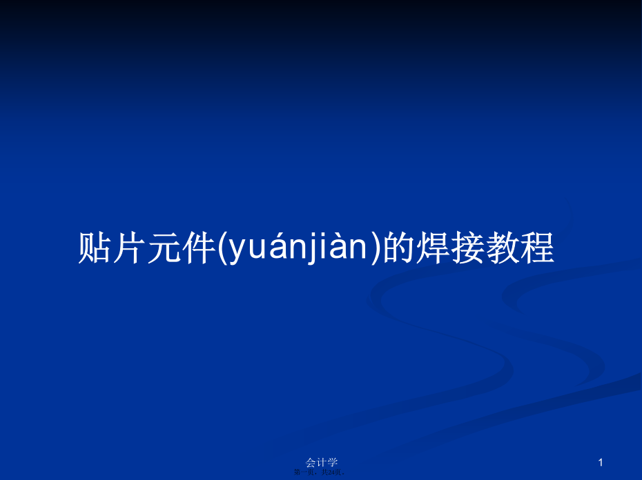 会计学1、手工焊接的基本操作方法①焊前准备,准备好电烙铁以及镊子、剪刀、斜口钳、尖嘴钳、焊锡丝、松香等工具,左手握焊料,右手握电烙铁,保持随时可焊状态(zhuàngtài)。②用烙铁加热备焊件。③送入锡丝,熔化适量焊丝。④移开锡丝,当焊丝流动覆盖焊接点,迅速移开电烙铁。2、电子元器件焊接的顺序(shùnxù)是:1)阻容、二极管等两引脚表贴元件,由小到大,由低到高。2)晶体管、集成电路等多引脚表贴元件,由小到大,由低到高。3)蜂鸣器、电解电容等其他通孔直插元器件,由小到大,由低到高。4)单排插针等接插件,