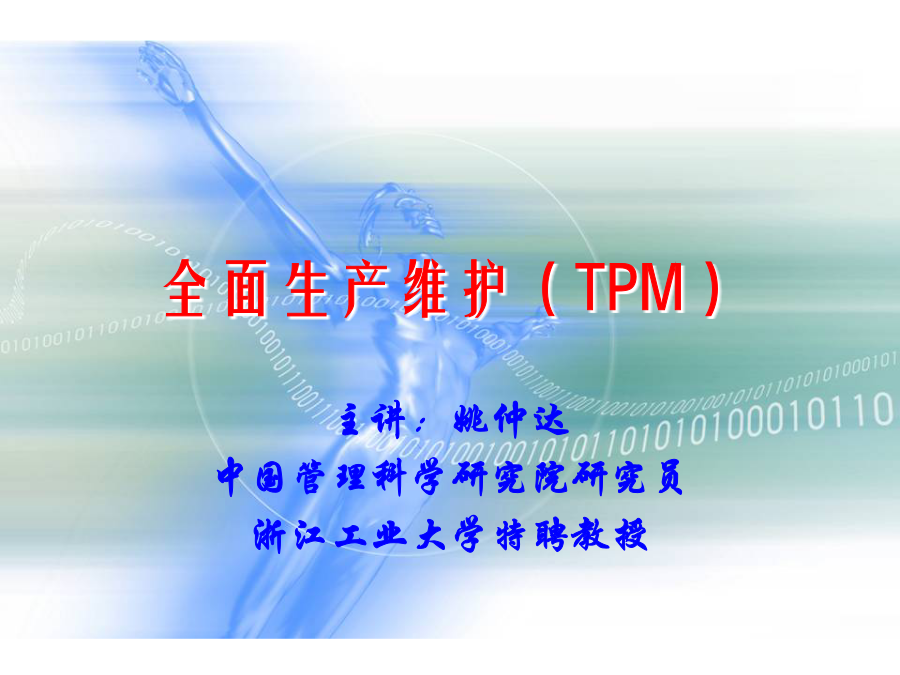 全面生产维护(TPM)一、TPM预备知识2、什么是机制?3、制造业保持竞争优势的方法4、世界制造业的楷模——日本丰田5、什么是TPM?20世纪70年代,日本以美国的PM(预防保全或生产保全)为基础,开展了独特的TPM管理活动,收到了令人瞩目的成就。TPM起初是从生产部门展开,80年代以后逐步扩展成为全公司的TPM。全球第一家通过TPM认证的企业是日本丰田集团下属的日本电装公司预防保全时代(PM)改良保全时代(CM)保全预防时代(MP)全员生产保全时代(TPM)供应链的TPM时代TPM与PM比较TPM的效果