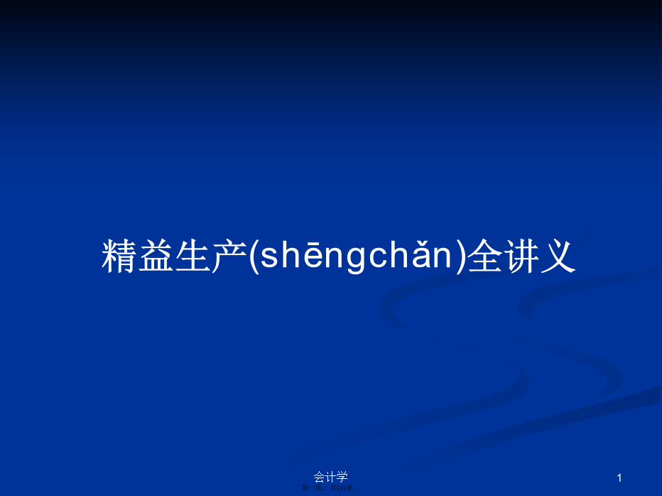 会计学课程(kèchéng)大纲第一章精益生产(shēngchǎn)概论第二章认识(rènshi)浪费(Muda)第三章消除(xiāochú)浪费第四章精益生产方式(shēngchǎnfāngshì)的基础第五章两种(推和拉)生产(shēngchǎn)系统第六章看板管理(guǎnlǐ)第七章精益生产(shēngchǎn)之现场IE第八章一个(yīɡè)流生产第一章精益生产(shēngchǎn)概论何谓(héwèi)精益生产方式何谓(héwèi)精益生产方式项目现代(xiàndài)生产组织系统企业有效(y