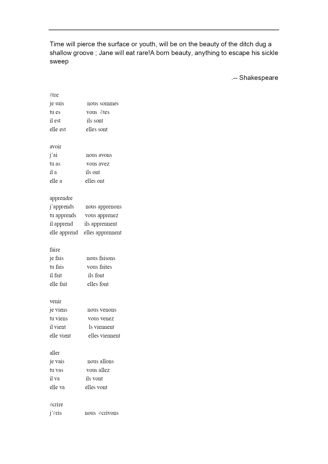Timewillpiercethesurfaceoryouth,willbeonthebeautyoftheditchdugashallowgroove;Janewilleatrare!Abornbeauty,anythingtoescapehissicklesweep.--Shakespeareêtrejesuisnoussommestuesvousêtesilestilssontelleestellessontavoirj’ainousavonstuasvousavezilailsontelleael