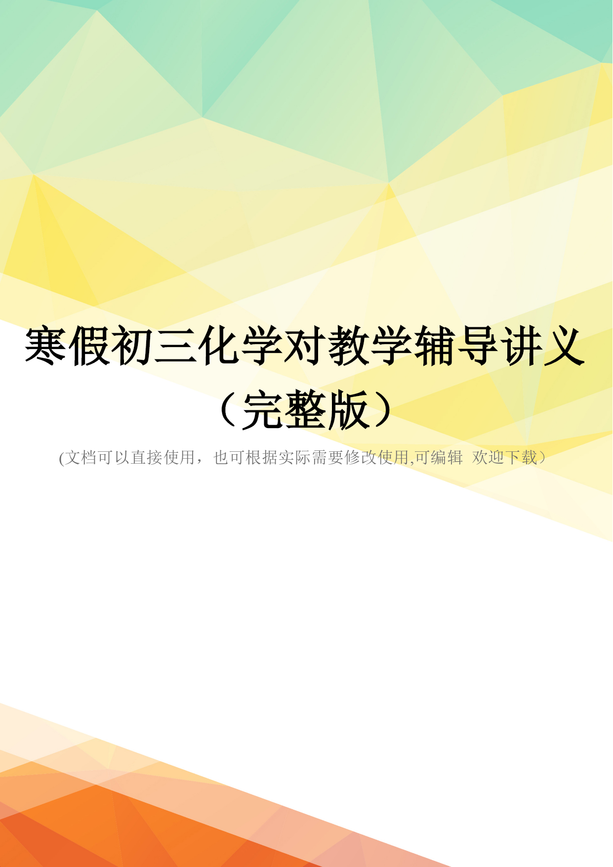 寒假初三化学对教学辅导讲义(完整版)(文档可以直接使用,也可根据实际需要修改使用,可编辑欢迎下载)寒假初三化学1对1教学辅导讲义(一)第一部分情况了解了解基本情况2、制定复习方案第二部分质检试卷复习1、实验题2、计算题3、部分选择题小试牛刀16.(13分)(2021•漳州质检)根据实验装置图回答问题.(1)写出标号仪器名称:①铁架台;②量筒.(2)写出A装置试管中发生反应的化学方程式2KMnO4\frac{\underline{\;\;△\;\;}}{\;}K2MnO4+MnO2+O2↑.(3)若要制取氧
