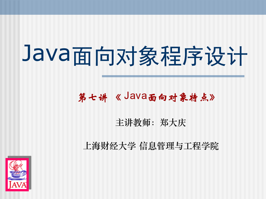 Java面向对象程序设计JAVA中的OOPJAVA中的OOP(续)JAVA中类的结构类的例子:类的例子:续JAVA中类的声明JAVA中类的声明(续)类的成员变量的声明类的封装与数据隐藏成员变量的声明(续)成员变量的声明:例方法:语法结构方法的定义方法的声明(续)方法的声明(续)方法体方法的定义(例)方法的参数引用类型值传送各变量的作用域24例:银行业务的面向对象设计例:银行业务classBankAccount{//银行账户类privatefloatbalance;//默认初值为0privatefloati