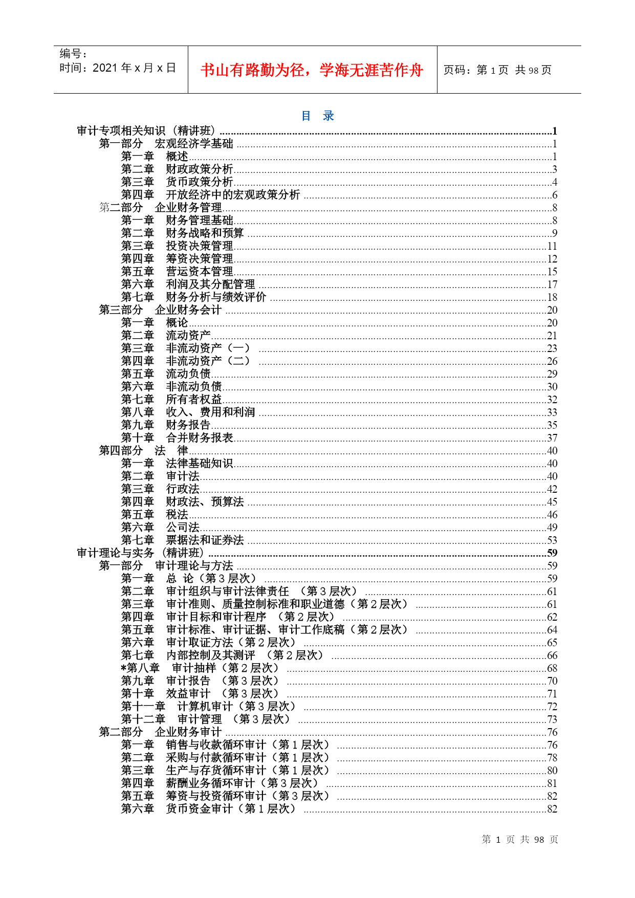 编号:时间:2021年x月x日书山有路勤为径,学海无涯苦作舟页码:第PAGE98页共NUMPAGES98页第PAGE\*MERGEFORMAT98页共NUMPAGES\*MERGEFORMAT98页目录TOC\o"1-3"\h\z\uHYPERLINK\l"_Toc336615280"审计专项相关知识(精讲班)PAGEREF_Toc336615280\h1HYPERLINK\l"_Toc336615281"第一部分宏观经济学基础PAGEREF_Toc33661