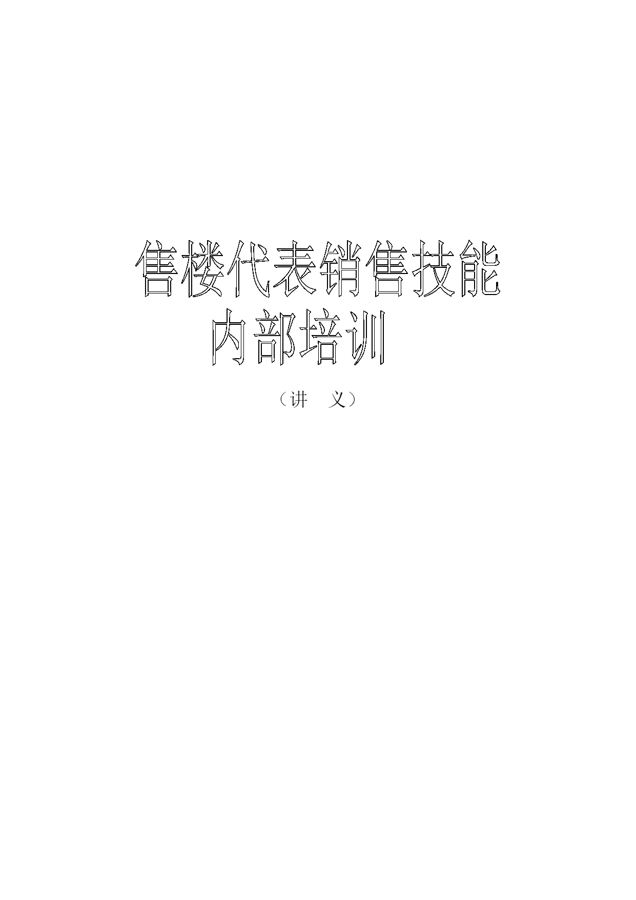 PAGE(讲义)编号:时间:2021年x月x日书山有路勤为径,学海无涯苦作舟页码:第PAGE87页共NUMPAGES87页第PAGE\*MERGEFORMAT87页共NUMPAGES\*MERGEFORMAT87页[开场白]:恭喜各位选择房地产销售这一行业!售楼代表享有着其他销售人员所不具备的优越条件:坐销;工作环境;心理优势;更好的收入但是,房地产销售是一个充满竞争的“精英行业”:更繁杂的产品相关知识;更丰富的销售技能、技巧;面对客户最为慎重的购买选择;成交结果对客户将产生