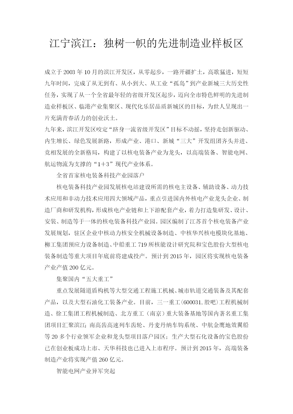 江宁滨江:独树一帜的先进制造业样板区.doc