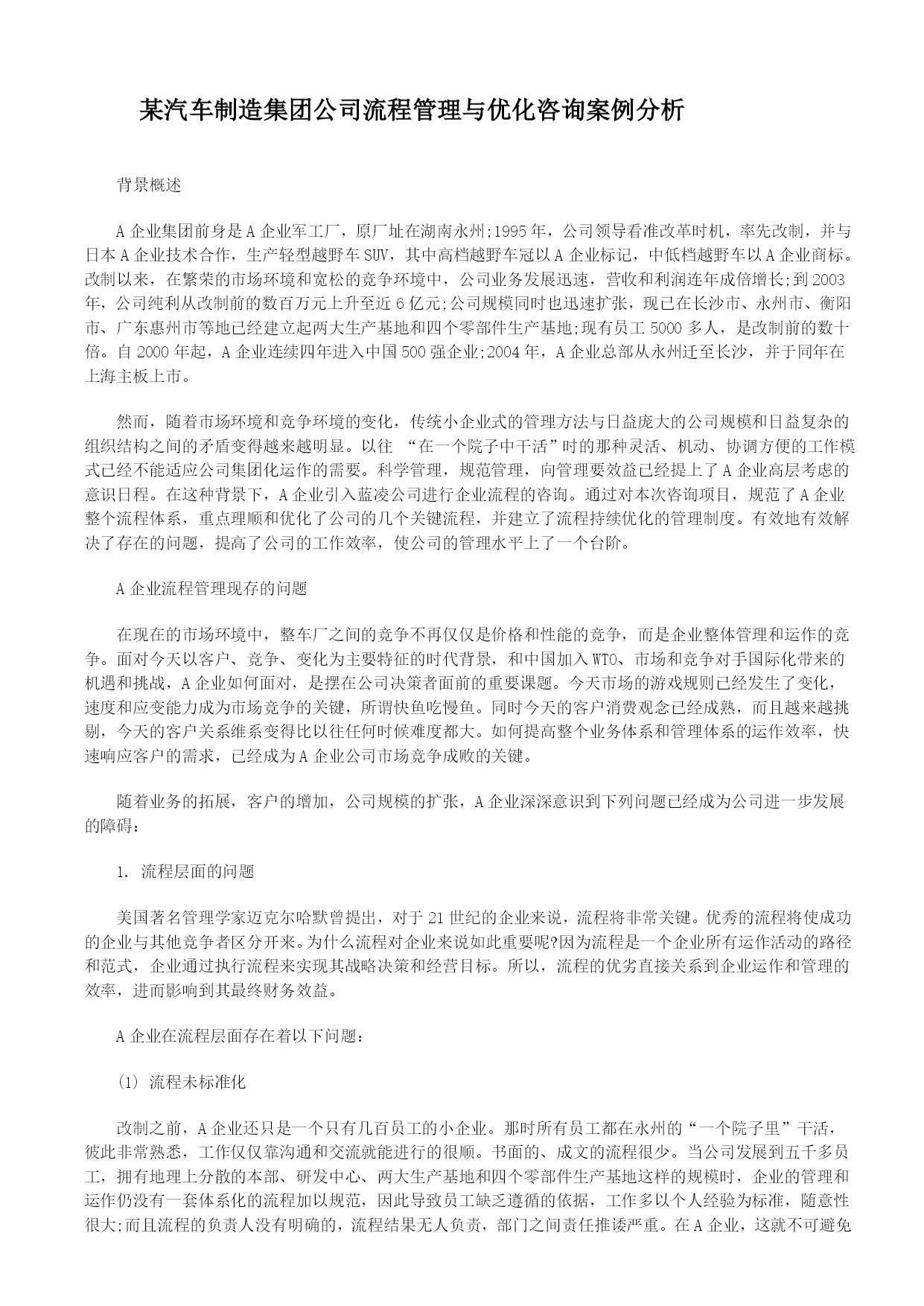 某汽车制造集团公司流程管理与优化咨询案例分析.doc