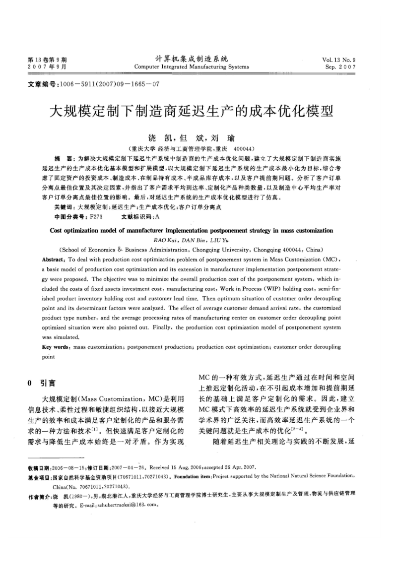 大规模定制下制造商延迟生产的成本优化模型.pdf