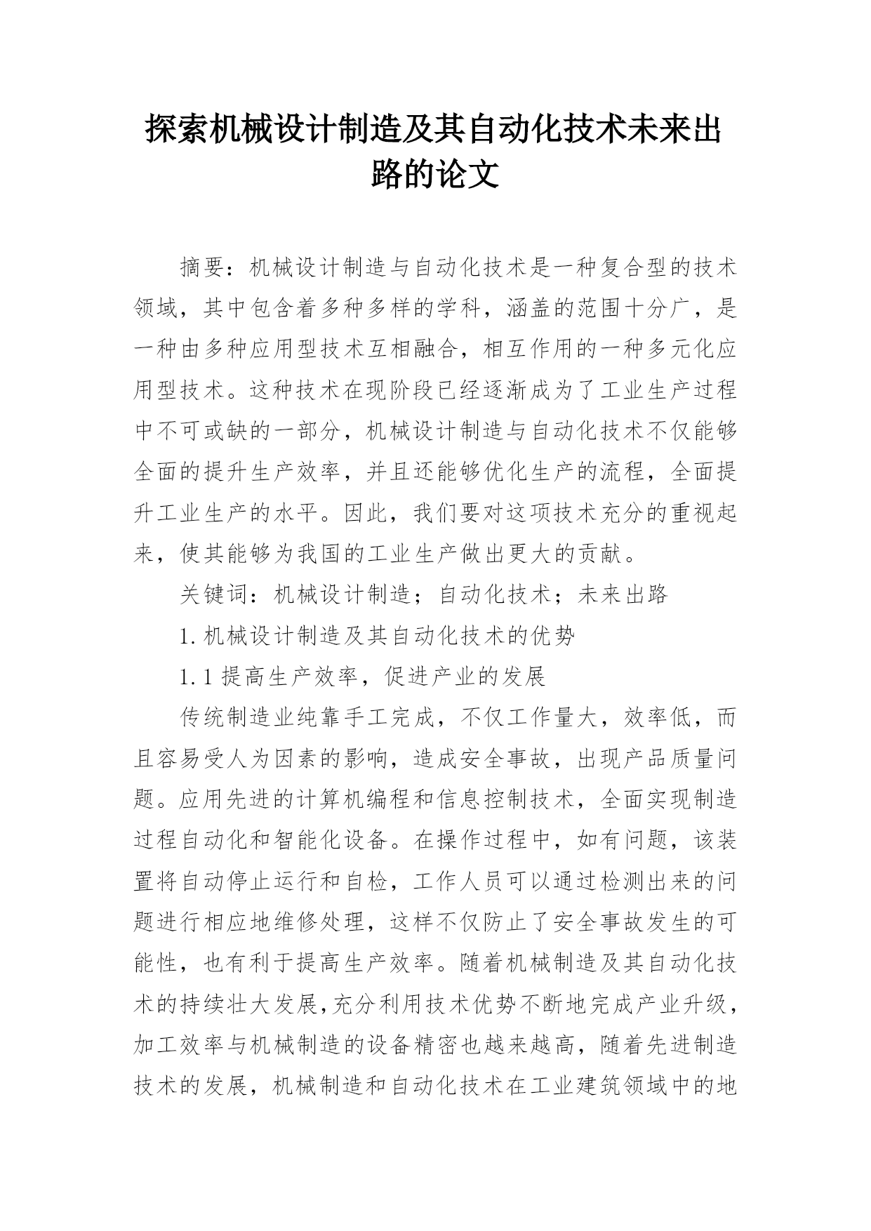 探索机械设计制造及其自动化技术未来出路的论文.docx