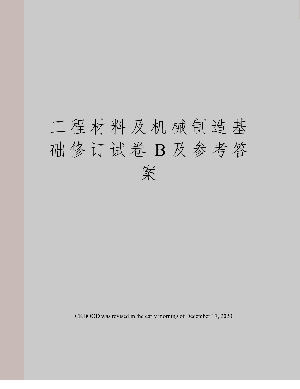 工程材料及机械制造基础修订试卷B及参考答案.pdf
