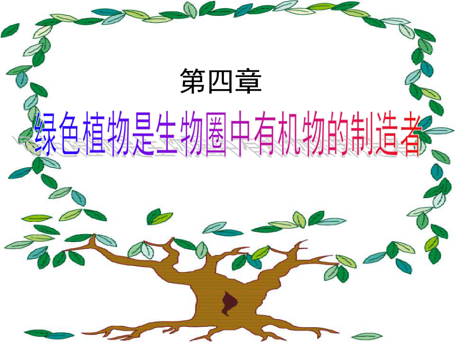 第四章想一想议一议生物圈中有一种巨大的生产有机物的天然“工厂”,可以运用简朴的无机物合成复杂的有机物,从而养活地球上所有的生物。发明这一奇迹的是那些绿叶。试验材料:1.你准备选用哪一盆天竺葵作为试验材料?试验环节:汇报试验现象,分析原因:暗处理→遮光→光照几小时→摘叶片→酒精隔水加热→漂洗→滴碘液→漂洗→观测叶色变化分析成果,得出结论:绿色植物,只要细胞中具有叶绿体,就能制造有机物,叶片是绿色植物制造有机物的重要器官。叶绿体由于具有叶绿素而展现绿色,绿色植物通过叶绿素捕捉太阳光,运用光提供的能量,在叶绿体