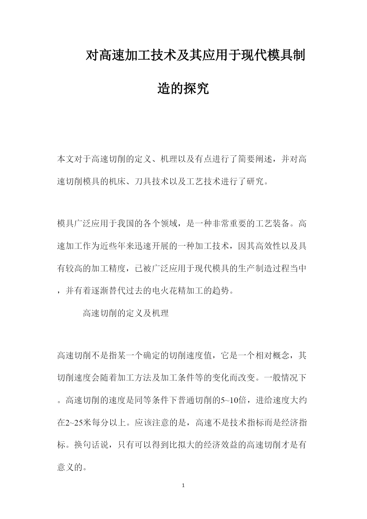 2022对高速加工技术及其应用于现代模具制造的探究.docx