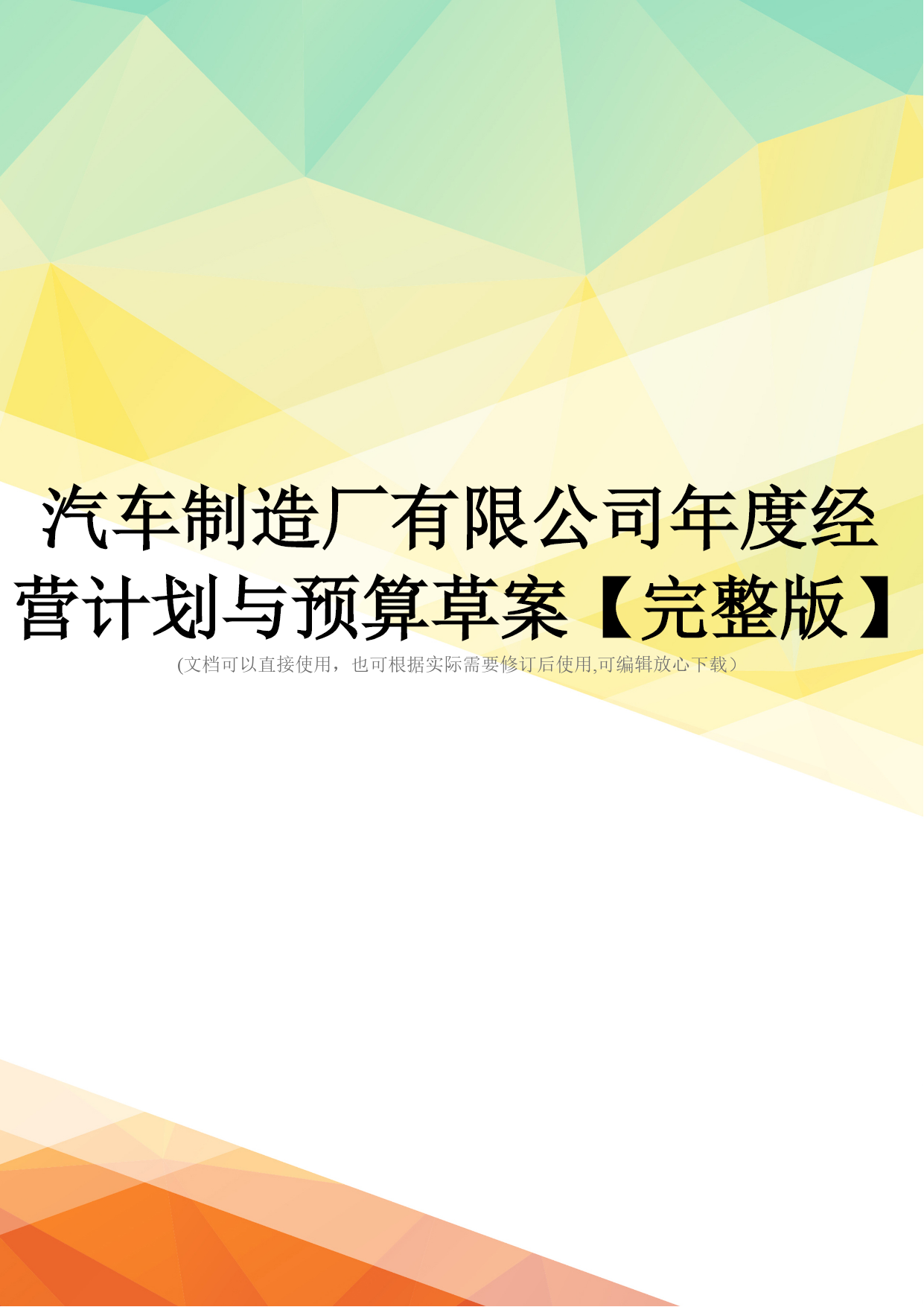 汽车制造厂有限公司年度经营计划与预算草案.doc