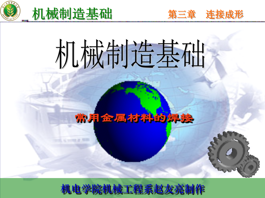 机械制造基础第三章连接成形一、金属材料的焊接性3.焊接性的评定方法2)碳当量估算法常用金属材料的焊接性二、碳钢的焊接3.高碳钢的焊接三、低合金结构钢的焊接2.特殊性能钢四、不锈钢焊接五、铸铁的焊补2.冷焊法六、有色金属的焊接(二)铜及铜合金的焊接(三)钛及钛合金的焊接