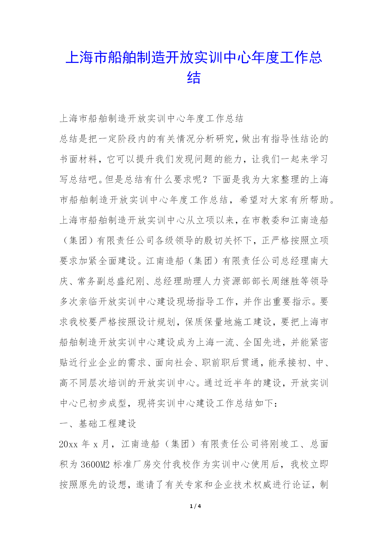 上海市船舶制造开放实训中心年度工作总结-.docx