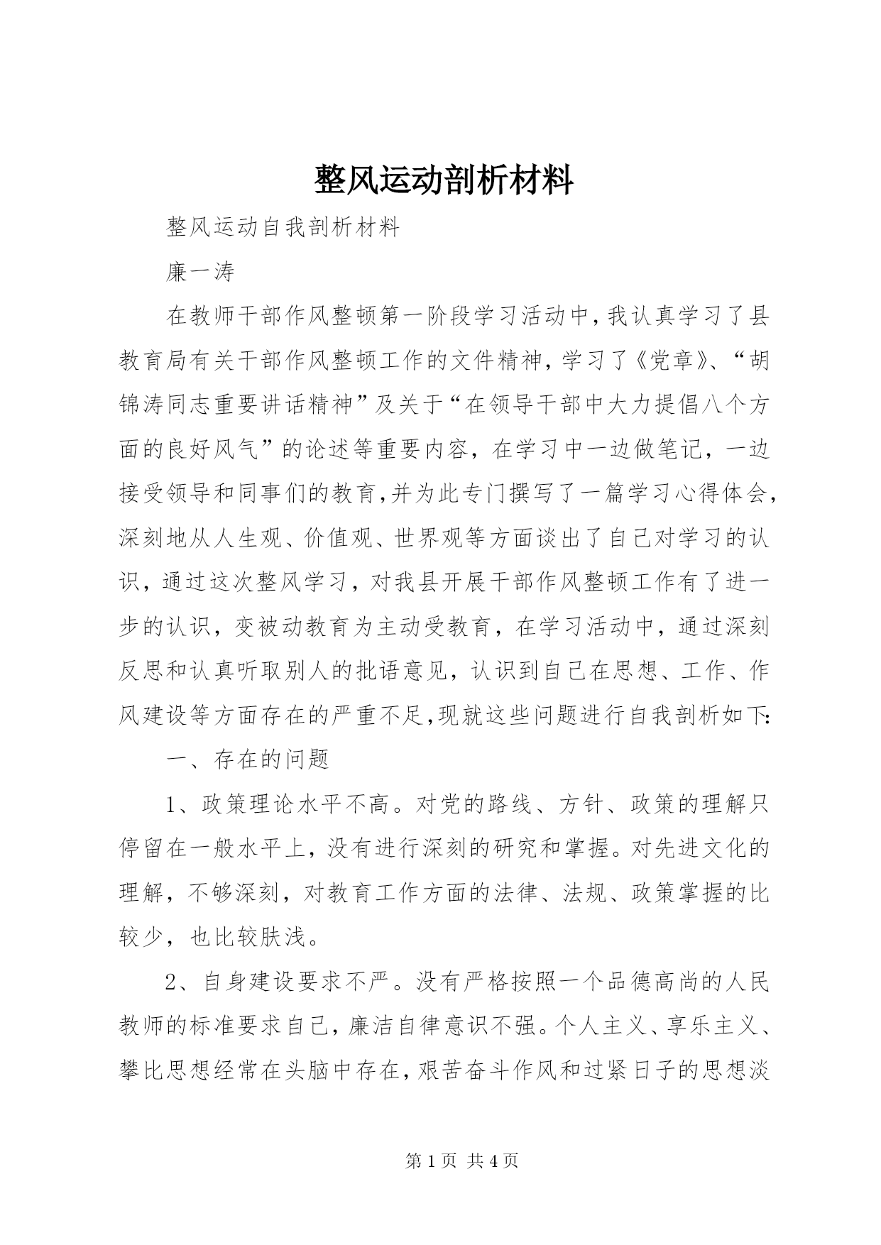 第PAGE\*Arabic\*MERGEFORMAT4页共NUMPAGES\*MERGEFORMAT4页整风运动剖析材料整风运动自我剖析材料廉一涛在教师干部作风整顿第一阶段学习活动中,我认真学习了县教育局有关干部作风整顿工作的文件精神,学习了《党章》、“胡锦涛同志重要讲话精神”及关于“在领导干部中大力提倡八个方面的良好风气”的论述等重要内容,在学习中一边做笔记,一边接受领导和同事们的教育,并为此专门撰写了一篇学习心得体会,深刻地从人生观、价值观、世界观等方面谈出了自己对学习的认识,通过这次整风
