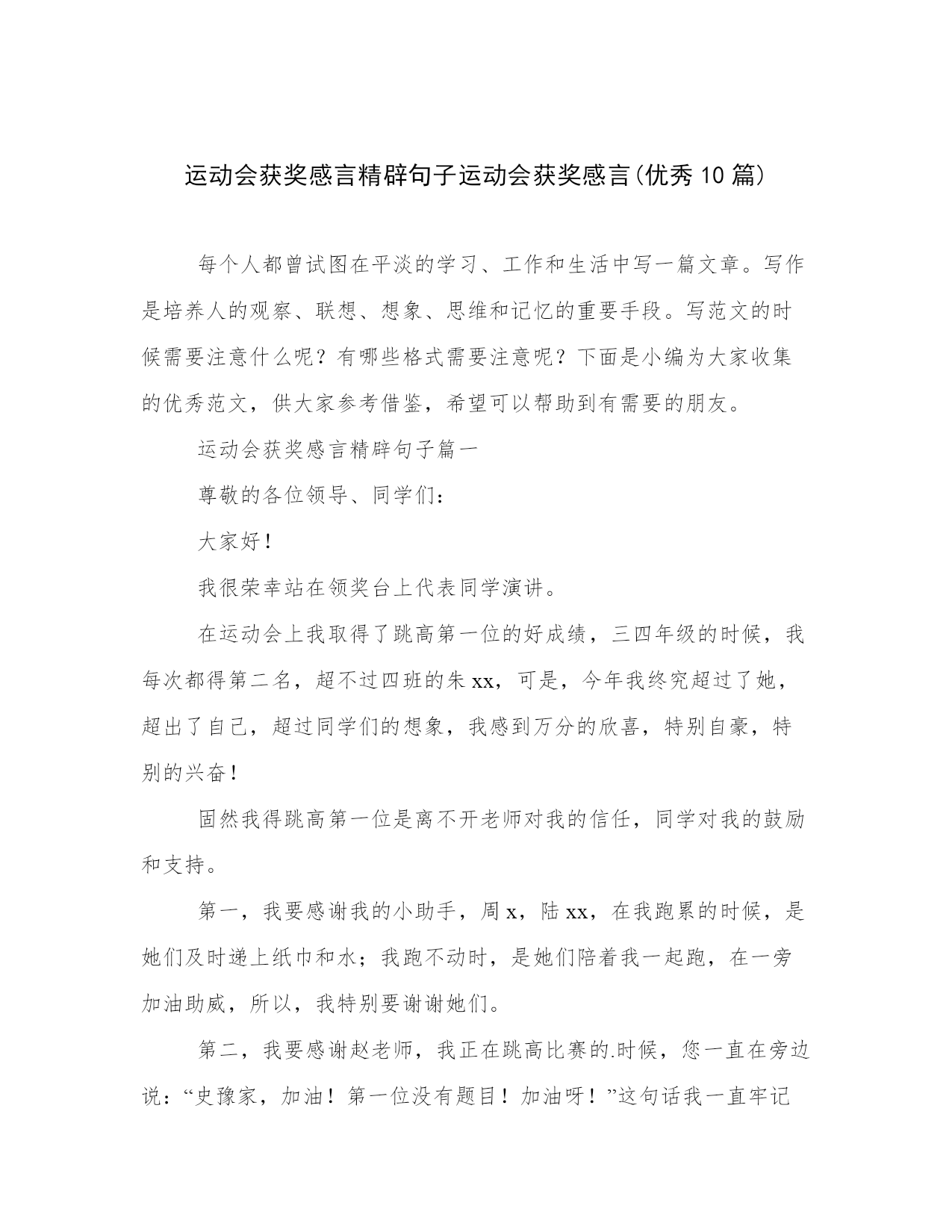 运动会获奖感言精辟句子运动会获奖感言(优秀10篇).docx