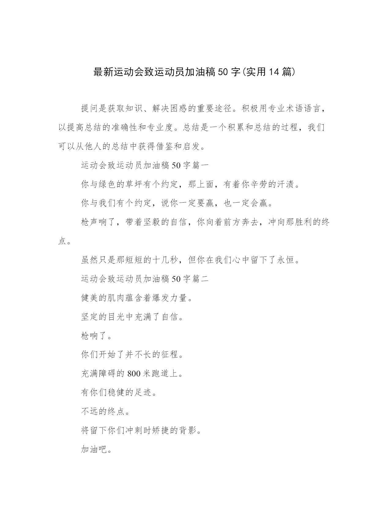 最新运动会致运动员加油稿50字(实用14篇).docx